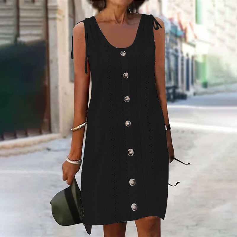 WITNESS - Dieses ärmellose Strickkleid mit U-förmigem Ausschnitt ist aus weichem, leichtem Polyester und Elastan gefertigt und bietet Atmungsaktivität und Flexibilität für ganztägigen Komfort.
