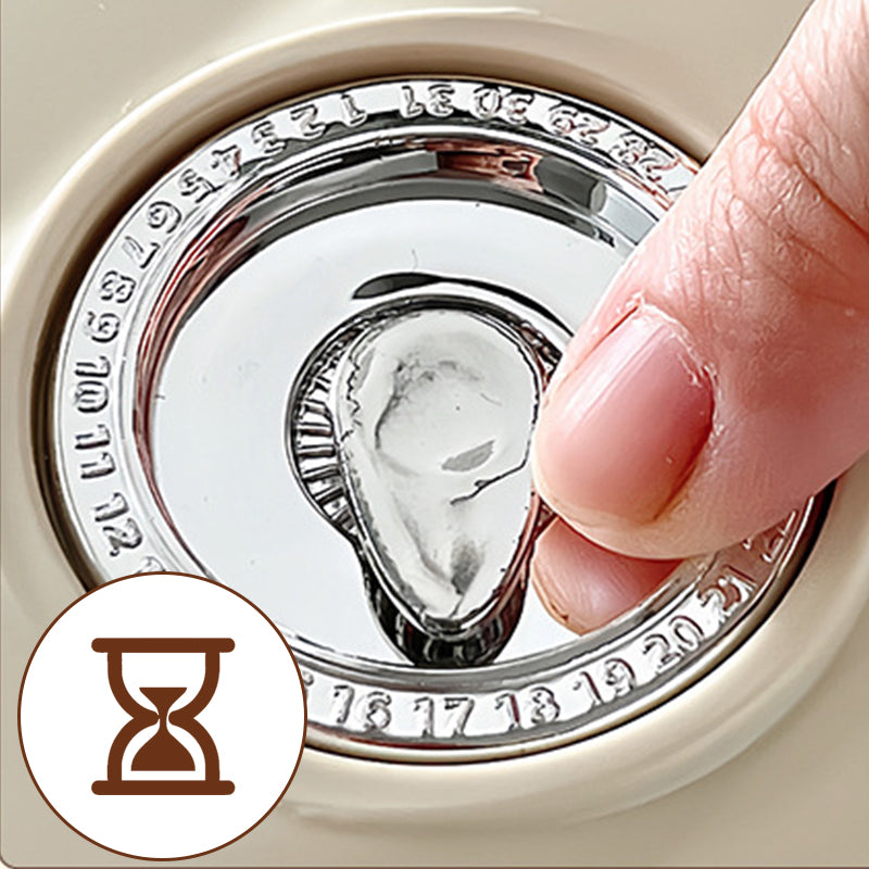 FRISCHE AUFZEICHNUNG: Mit dem Drehknopf zur Aufzeichnung der Aufbewahrungszeit können Sie ganz einfach markieren, wann Ihre Eier in den Organizer gelegt wurden. Die durchsichtige Kunststoffkonstruktion bietet hervorragende Sichtbarkeit, sodass Sie auf einen Blick sehen, wie viele Eier Sie noch haben. So vermeiden Sie Lebensmittelverschwendung und unnötige Gänge zum Geschäft.