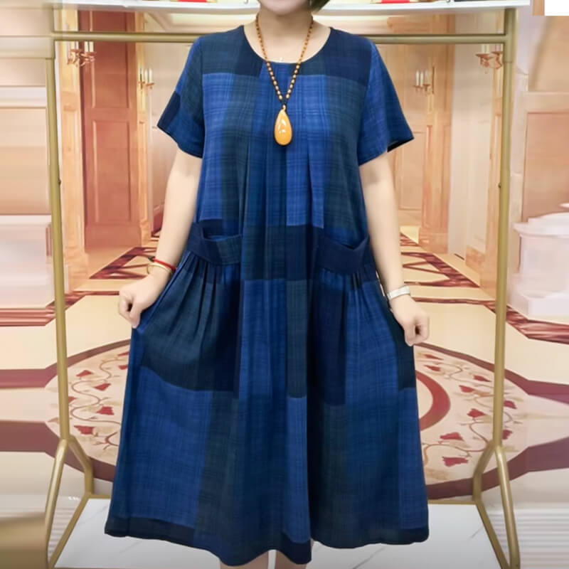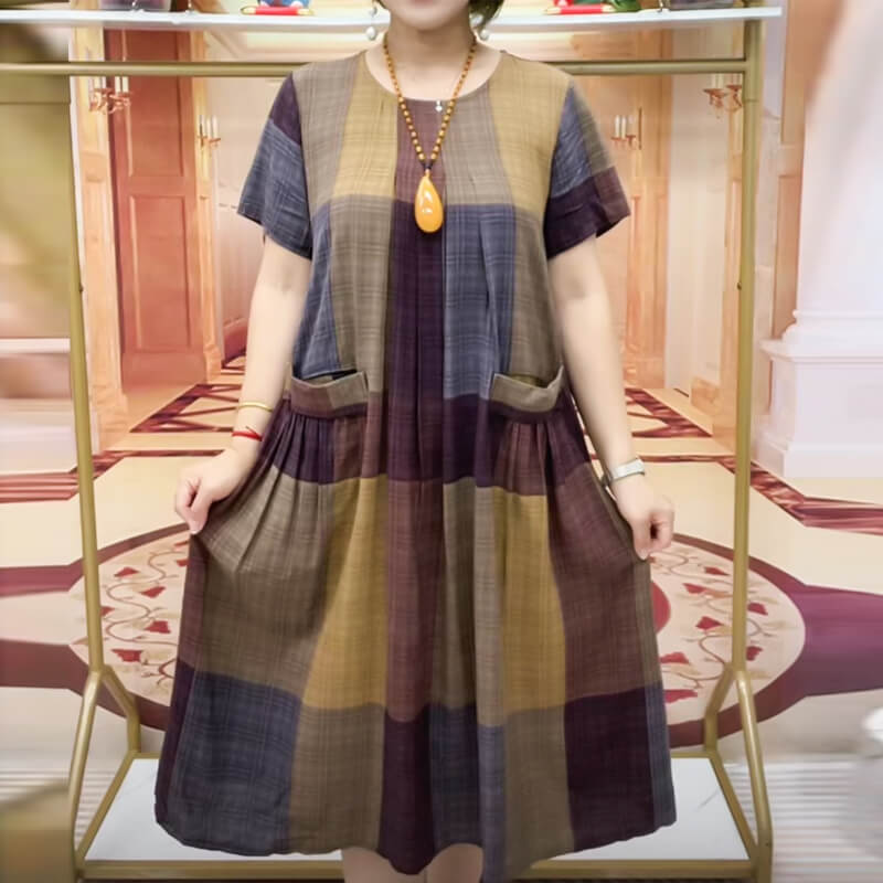 Bestes Geschenk - Sommerkleid aus Baumwolle und Leinen mit doppelten Taschen