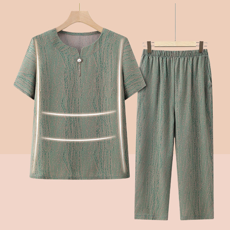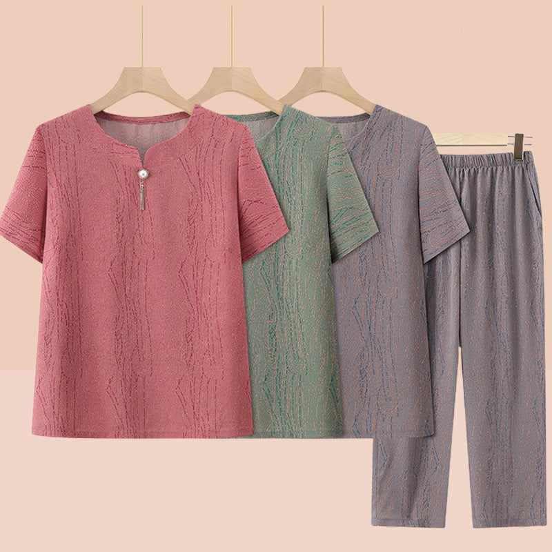 Typ: Kurzarm-Oberteil, elastischer Bund, Hose, lÀssiges 2-teiliges Set