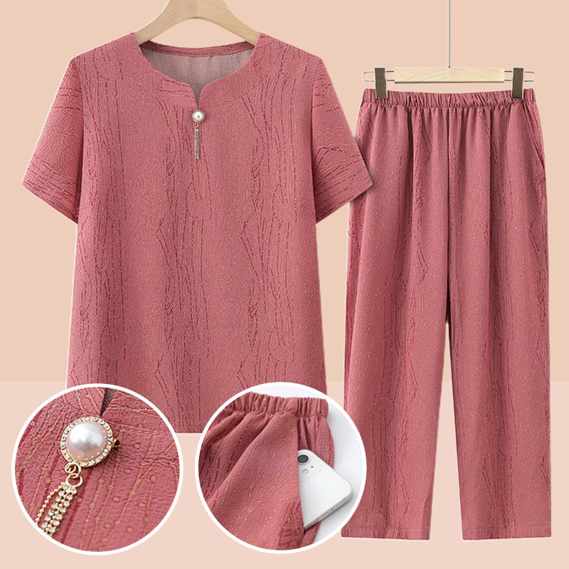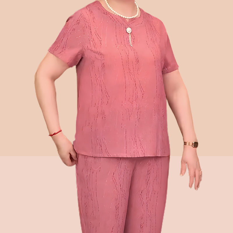 1 * Kurzarm-Oberteil mit elastischem Bund und Hose, lÀssiges 2-teiliges Set