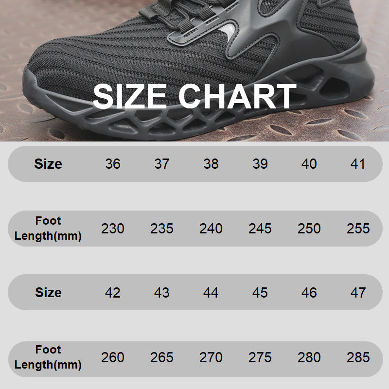 ANTI-SMASHING UND ANTI-PIERCING - Ausgestattet mit einer verbreiterten Stahlkappe zum Schutz der Zehen vor Verletzungen. Das verdickte Kevlar bedeckt die gesamte Sohle und verhindert, dass sich Nägel durchbohren.