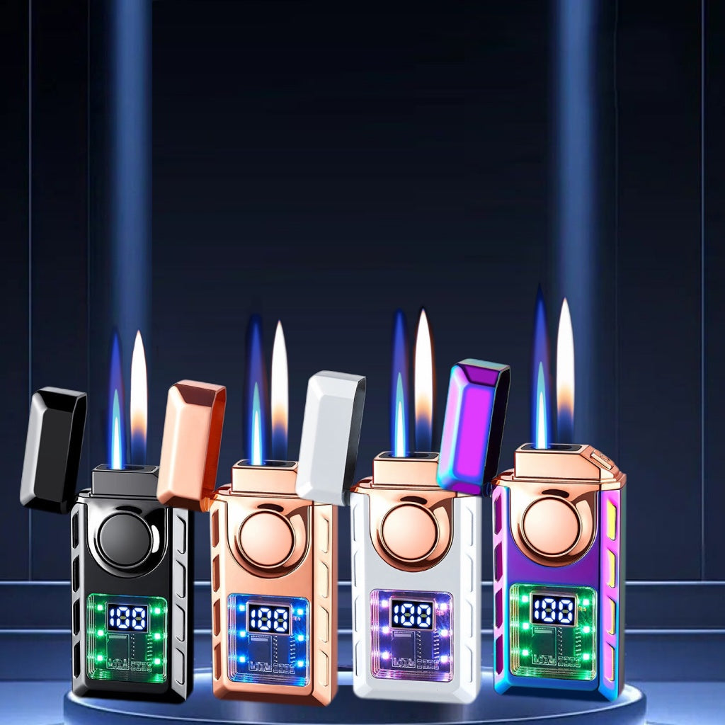 🔥2024 Neue Produktauflistung - Multifunktionales Doppelflammen-Feuerzeug mit farbigen Lichtern