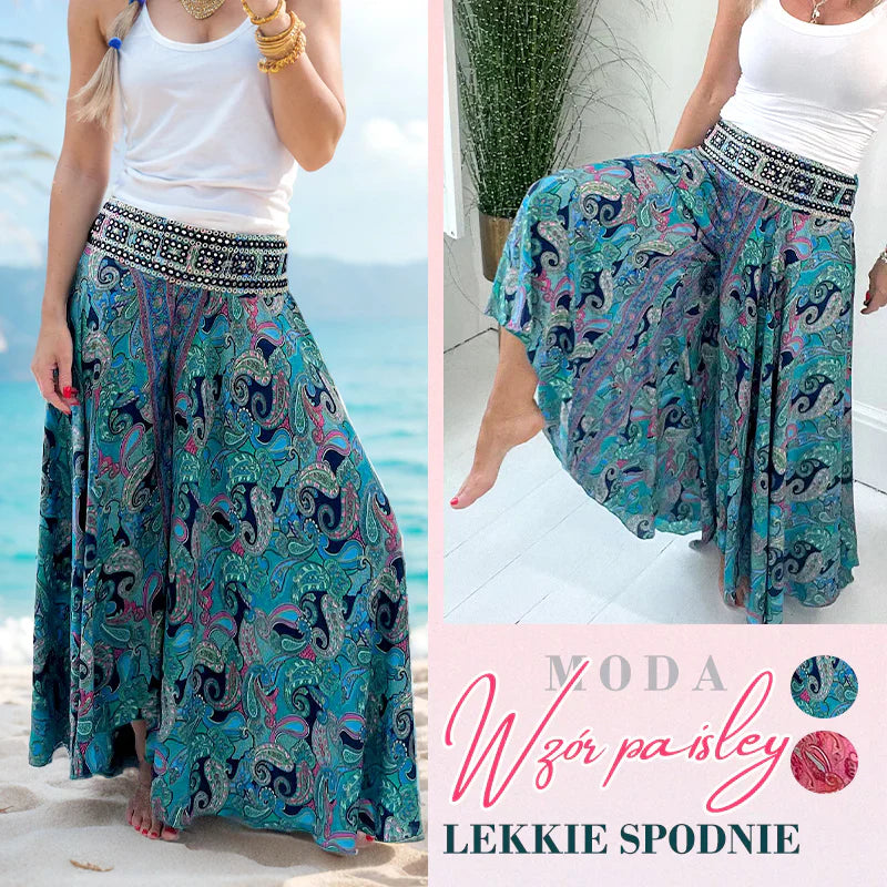 Diese modische und bequeme Hose hat ein lebhaftes Paisleymuster, das Ihrem Look einen Hauch von Boho-Stil verleiht. Der elastische Patchwork-Bund sorgt für einen einzigartigen Look, während der leichte Stoff für Atmungsaktivität und Bewegungsfreiheit sorgt.