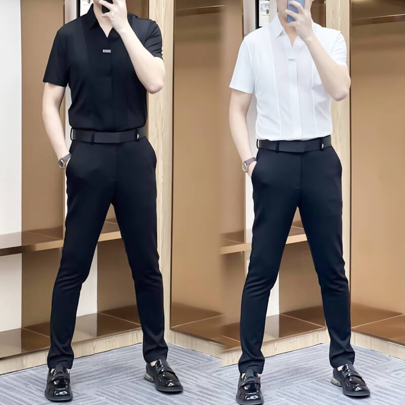 1 * Herren Sommer Business Casual Patchwork Hemd