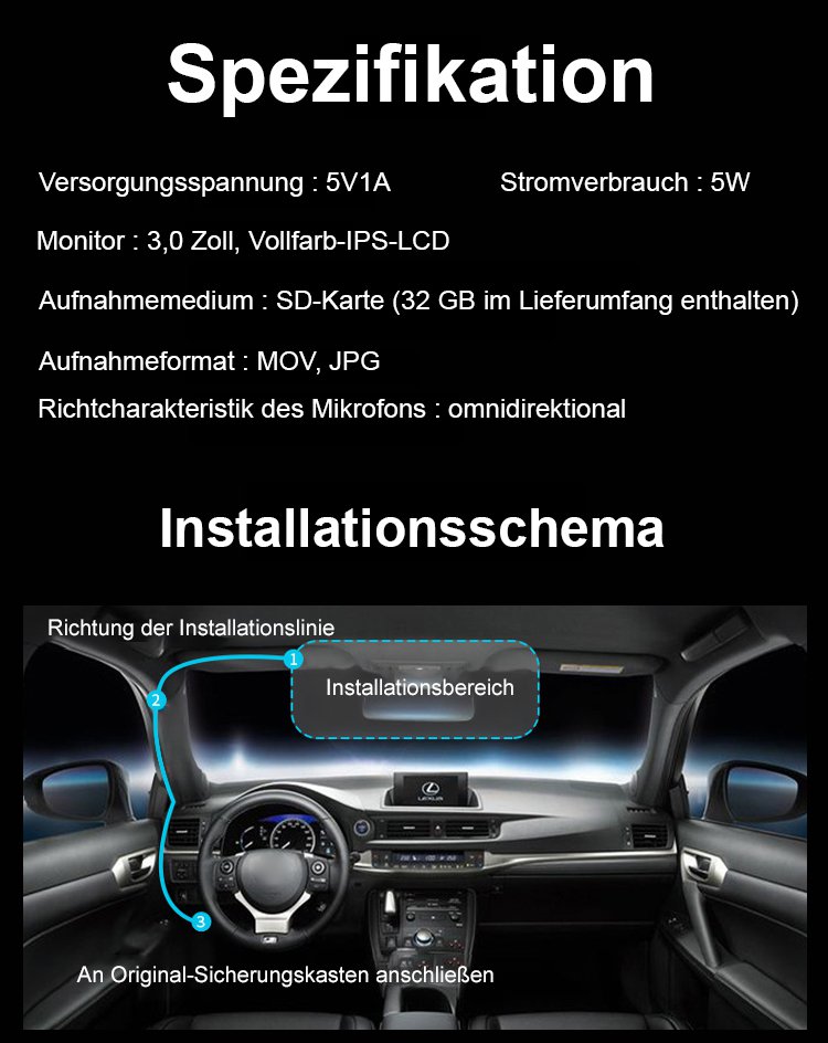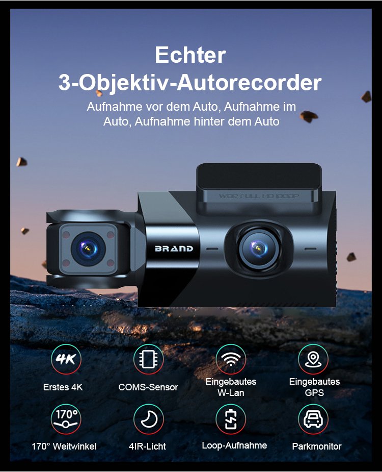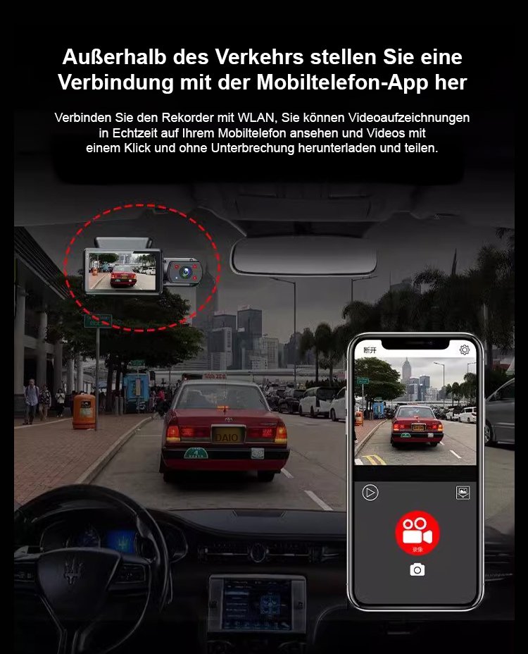 🚗🎥HD-Wifi-Auto-Recorder mit drei Aufzeichnungen