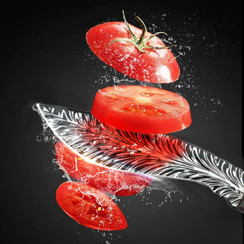 Lieferumfang: 1* Scharfes Edelstahlmesser mit Feder-Muster