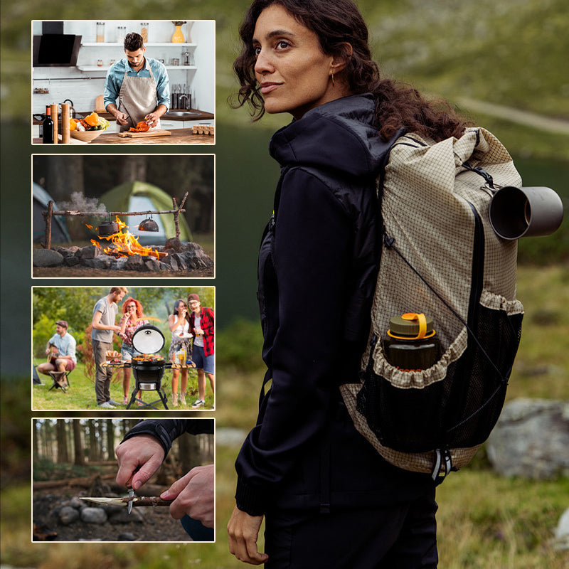 SCHARFE PRÄZISIONSSCHNEIDEN: Handpolierte, ultrascharfe Edelstahlklingen ermöglichen müheloses Schneiden von Fleisch und Gemüse sowie effizientes Grillen.