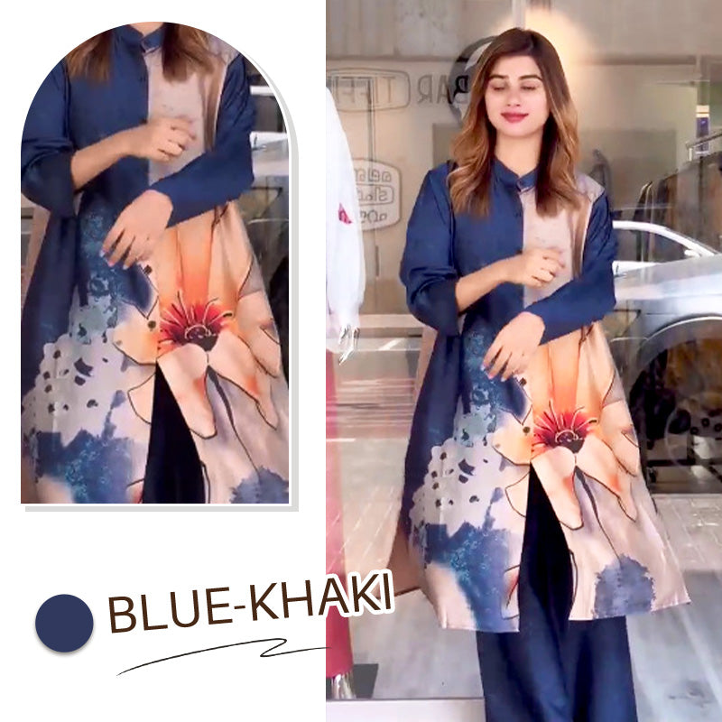 Lieferumfang: 1× Lässiger Damen-Zweiteiler: Hemd mit Hemdkragen und Hose