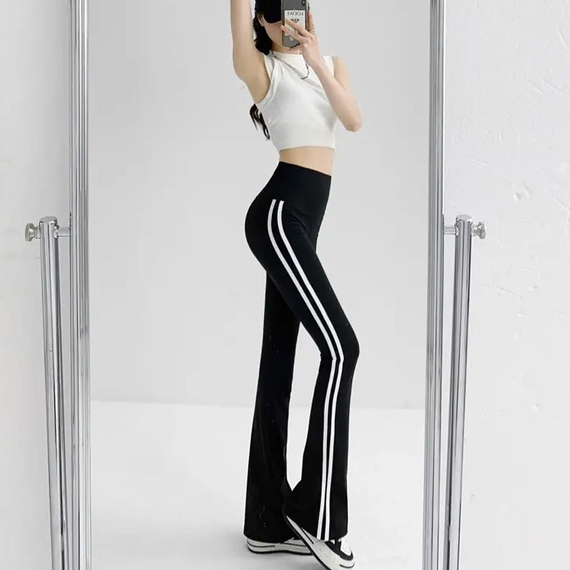 DESIGN MIT HOHER TAILLE UND SCHLAGHOSEN-STIL: Umspielen Sie Ihre Kurven mit unserem hoch taillierten Design, das Ihrer Taille schmeichelt. Das ausgestellte Bein sorgt für einen modischen Touch und macht diese Leggings perfekt für Training und Freizeit.