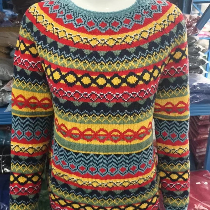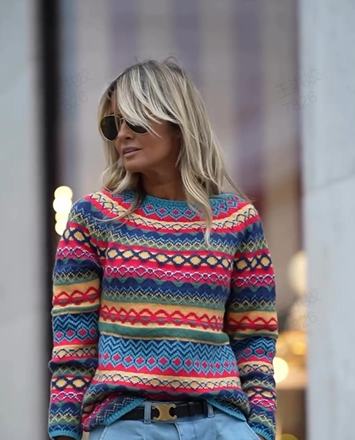 MODERNES MUSTERDESIGN - Mit einem farbenfrohen und modernen Muster verleiht dieser Strickpullover jedem Outfit eine schicke und modische Note, sodass Sie überall als Trendsetter auffallen.