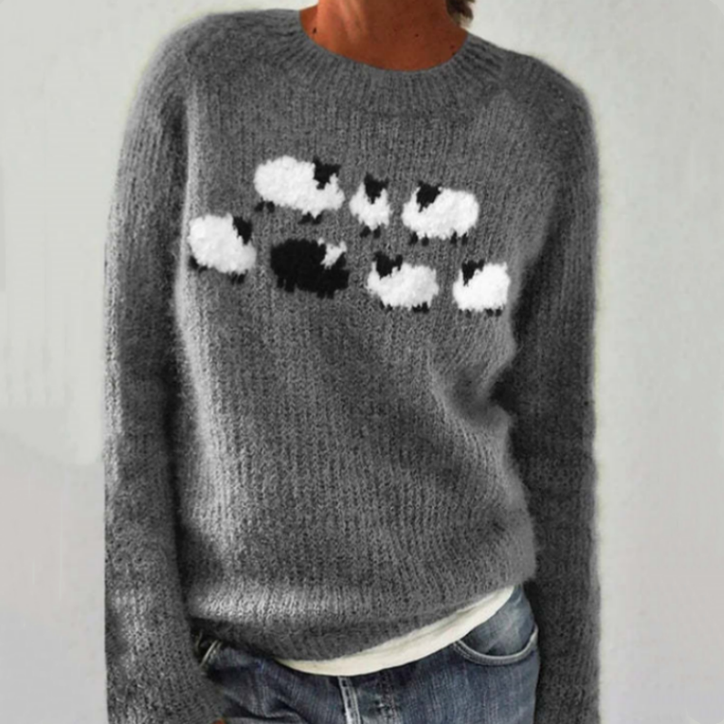Damen trendiger Strickpullover mit Rundhalsausschnitt und langen Ärmeln